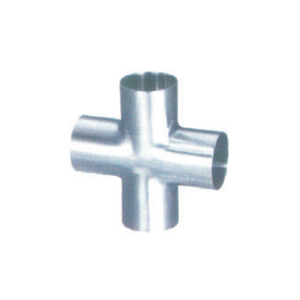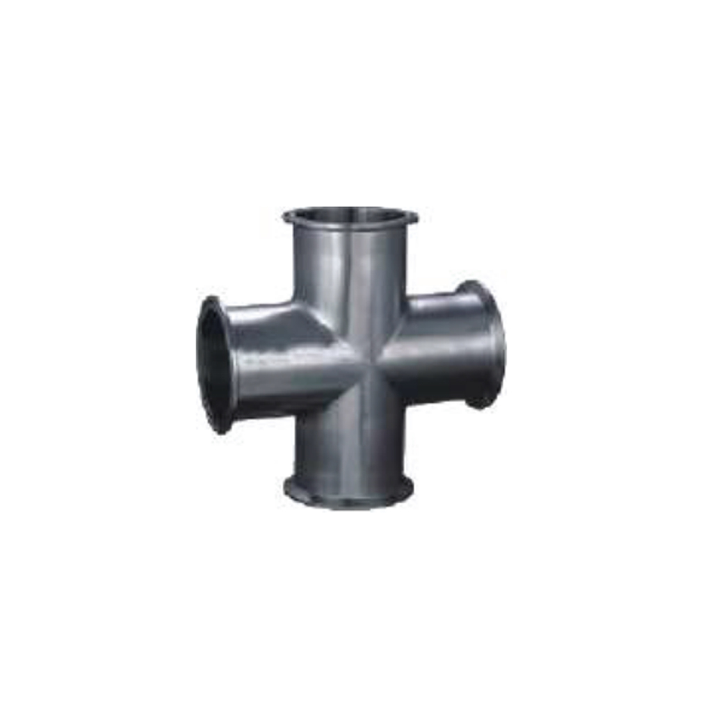 A TC Cross, also known as a Tri-Clover or Tri-Clamp Cross, is a sanitary pipe fitting designed to connect four sections of hygienic tubing or components, allowing for the intersection and distribution of fluid or gas flow in four directions. Essential for complex piping layouts in industries such as food and beverage, pharmaceutical, dairy, and biotechnology, this fitting features four Tri-Clamp ferrule ends.